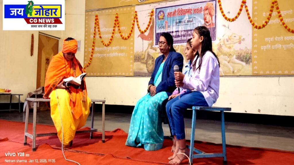 रायपुर- सरस्वती शिशु मंदिर उच्चतर माध्यमिक विद्यालय कन्या/ बालक सरस्वती विहार रायपुर में आज दिनांक 12 जनवरी 2025 को स्वामी विवेकानंद जयंती के उपलक्ष्य में राष्ट्रीय युवा दिवस मनाया गया। जिसमें मुख्य अतिथि डॉ अशोक दुबे ( जगदलपुर इंजीनियरिंग कॉलेज के पूर्व प्राचार्य) विशेष अतिथि उदय रावले (सरस्वती शिशु मंदिर देवेन्द्र नगर के पूर्व प्राचार्य), बी,पी, त्रिपाठी (शिक्षा संस्थान प्रतिनिधि राजेन्द्र फौजदार (समिति सदस्य) उपेन्द्र त्रिवेदी (पूर्व छात्र) हर्ष व्यास (पूर्व छात्र) डॉ ईरावत भूषण परगनिहा (विद्यालय के प्राचार्या) एवं लगभग 30 भूतपूर्व छात्र तथा 20 अभिभावक उपस्थित थे। इस दिन का उद्देश्य युवाओ को प्रेरित करना और समाज के प्रति अपनी जिम्मेदारी का अहसास कराना है। स्वामी विवेकानंद ने युवाओ को अपने चरित्र , ज्ञान, और शक्ति से राष्ट्र निर्माण में के लिए प्रेरित किया है। इसी उपलक्ष्य में आज विद्यालय के भैय्या बहनो द्वारा समूह गीत, भाषण, नाटक प्रस्तुति की गई। उसके बाद मुख्य अतिथि ने विद्यालय के समस्त भैय्या बहनो को मार्गदर्शन दिया, विशेष अतिथि रहे विद्यालय के भूतपूर्व छात्र ने अपना अनुभव बताया। कार्यक्रम के अंत में विद्यालय के प्राचार्या डॉ ईरावत भूषण परगनिहा ने धन्यवाद ज्ञापित किया उसके बाद शांति पाठ के सपापन किया गया।