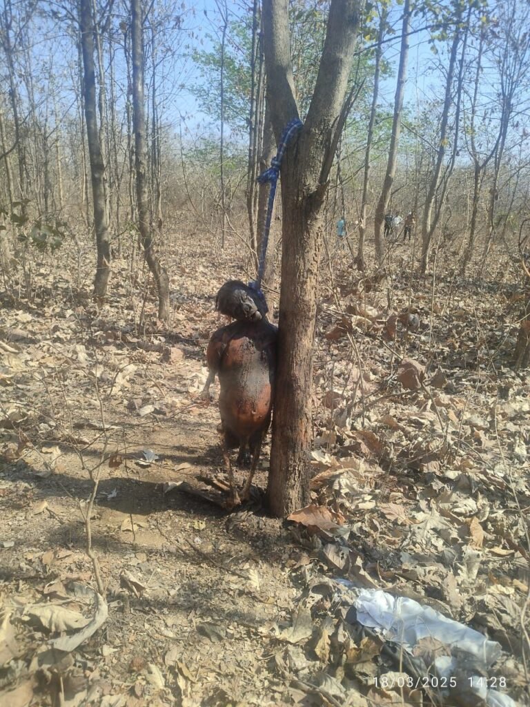 सूचक धन्नू यदु, जो बिलाडी कक्ष क्रमांक 41 जंगल में चैकीदार हैं, ने दिनांक 18 मार्च 2025 को करीब 11 बजे एक अज्ञात व्यक्ति को सागौन वृक्ष के डाल पर मृत अवस्था में लटका हुआ पाया।