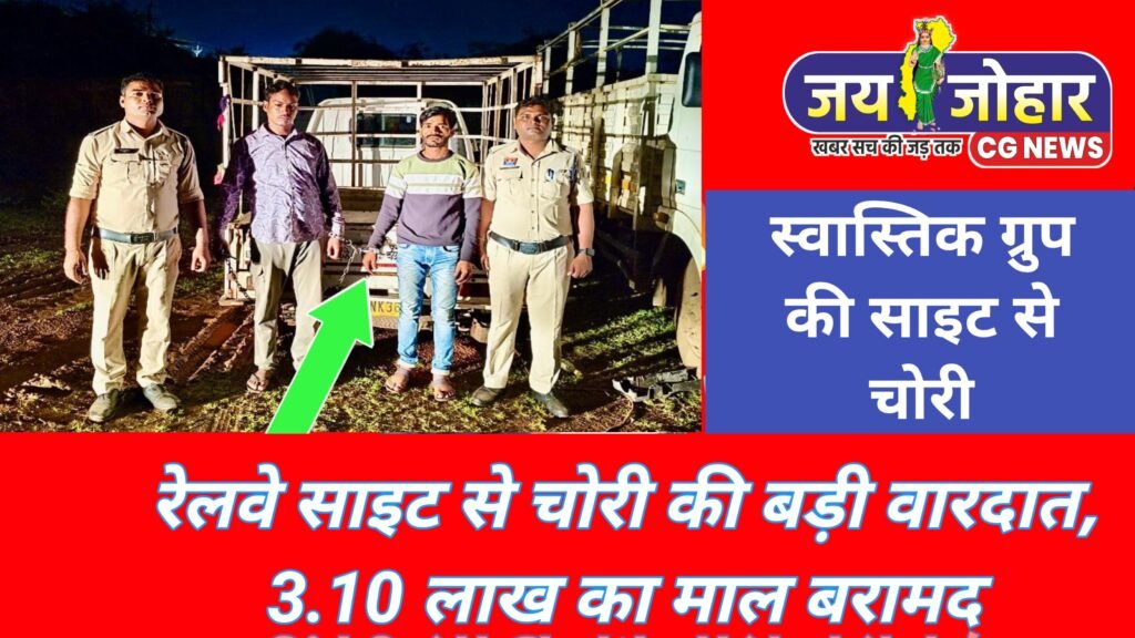 रायपुर। थाना तिल्दा नेवरा क्षेत्र के ग्राम खपरीकला स्थित निर्माणाधीन रेलवे अंडर पासिंग से एम.एस. प्लेट चोरी करने वाले दो आरोपियों को पुलिस ने गिरफ्तार किया है। पुलिस ने आरोपियों के कब्जे से चोरी की गई एम.एस. प्लेट (8 एम.एम.) तथा घटना में प्रयुक्त चारपहिया वाहन को जप्त किया है। बरामद माल की कुल कीमत लगभग 3 लाख 10 हजार रुपये बताई जा रही है।