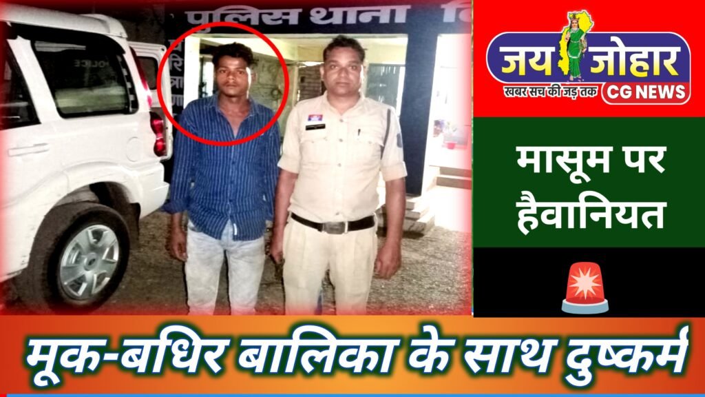 थाना तिल्दा नेवरा पुलिस ने मूक-बधिर नाबालिग बालिका के साथ दुष्कर्म करने वाले आरोपी को घटना के कुछ ही घंटों में गिरफ्तार कर लिया। पुलिस की त्वरित कार्रवाई से आरोपी फरार होने से पहले ही पकड़ा गया।