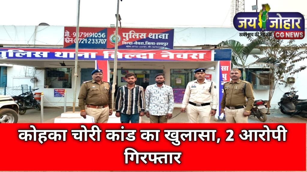 थाना तिल्दा नेवरा क्षेत्र अंतर्गत ग्राम कोहका में सूने मकान को निशाना बनाकर ताला तोड़कर चोरी करने वाले 02 आरोपियों को पुलिस ने गिरफ्तार किया है। यह कार्रवाई एण्टी क्राईम एण्ड साईबर यूनिट एवं थाना तिल्दा नेवरा पुलिस की संयुक्त टीम द्वारा की गई।
