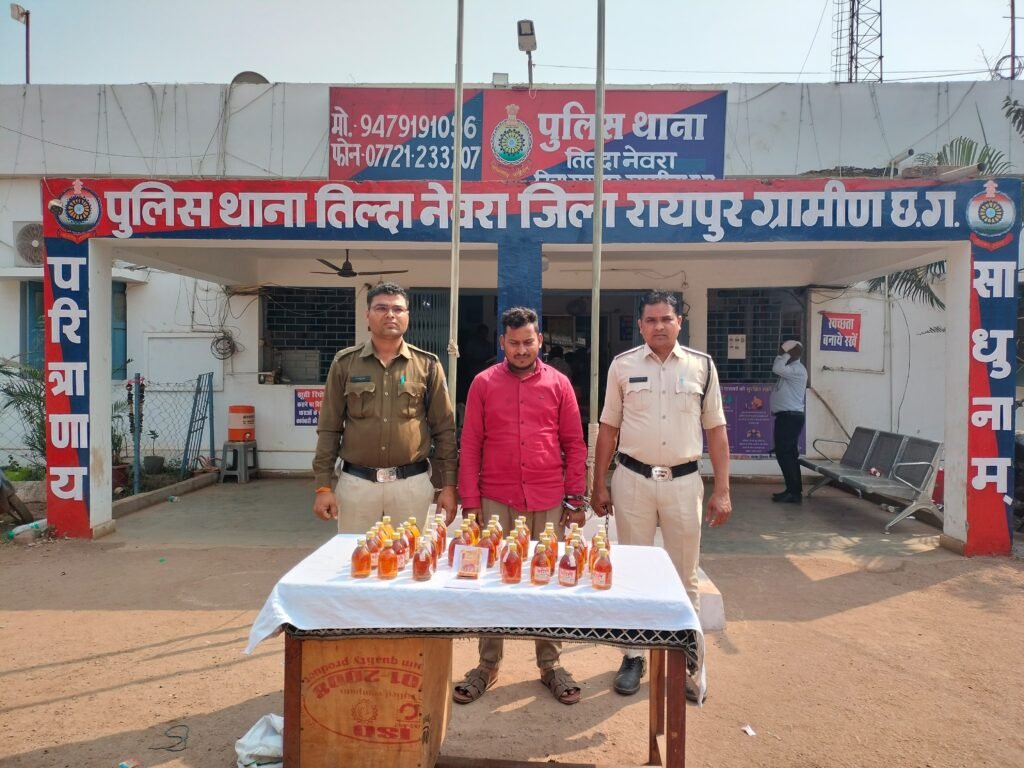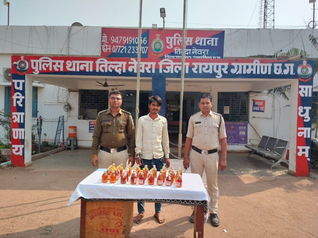 पीयूष वैष्णव (27) निवासी वार्ड 17 तिल्दा – 45 पौवा देशी शराब व 1000 रुपये नगद