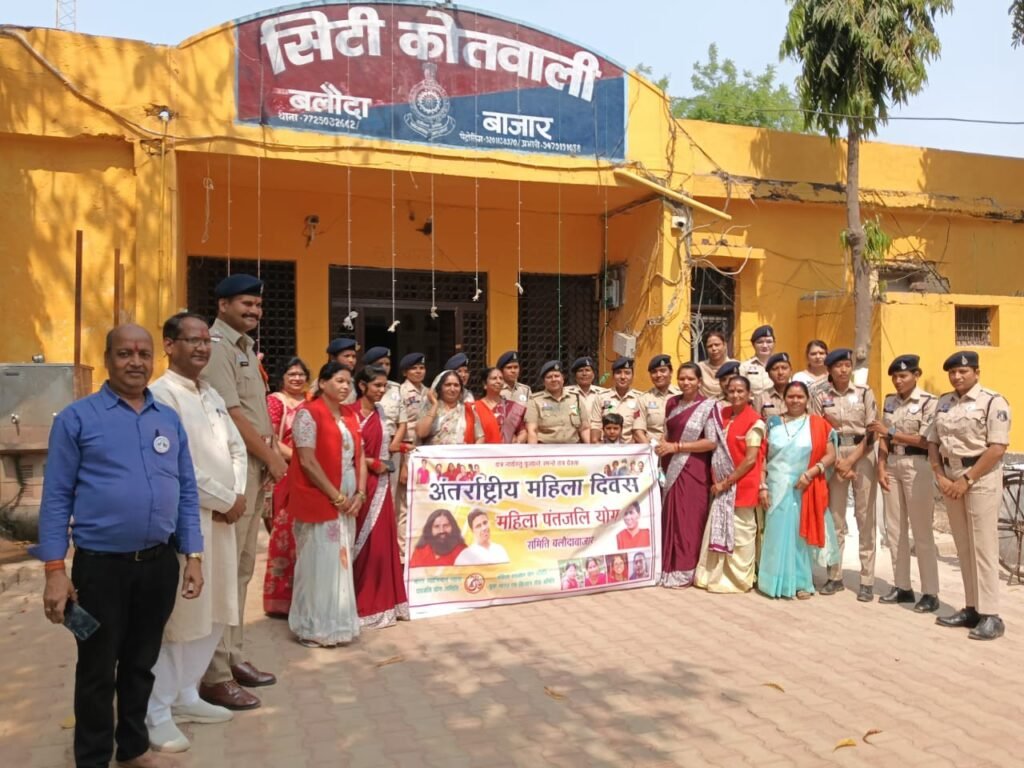 बलौदाबाजार। अंतरराष्ट्रीय महिला दिवस के अवसर पर सिटी कोतवाली बलौदाबाजार परिसर में सोमवार 9 मार्च 2026 को एक गरिमामय एवं प्रेरणादायक कार्यक्रम का आयोजन किया गया। यह कार्यक्रम शांति ज्योति समाजसेवी संस्थान हथबंद तथा महिला पतंजलि योग समिति बलौदाबाजार के संयुक्त तत्वावधान में आयोजित हुआ, जिसमें समाज सेवा, सुरक्षा, शांति और सहयोग के क्षेत्र में उल्लेखनीय कार्य करने वाली महिला शक्ति टीम का अभिनंदन किया गया।